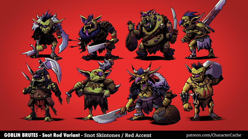 All year long, however, I’ve been hanging on to the idea of offering digital tools someday, and as such, have been hanging onto a legacy coloring pipeline that allows for a LOT of variety in colors as well as head and weapon replacements. But this amazing tool that I’ve built comes at the expense of being cumbersome and slow, especially for a one-man part-time art team.