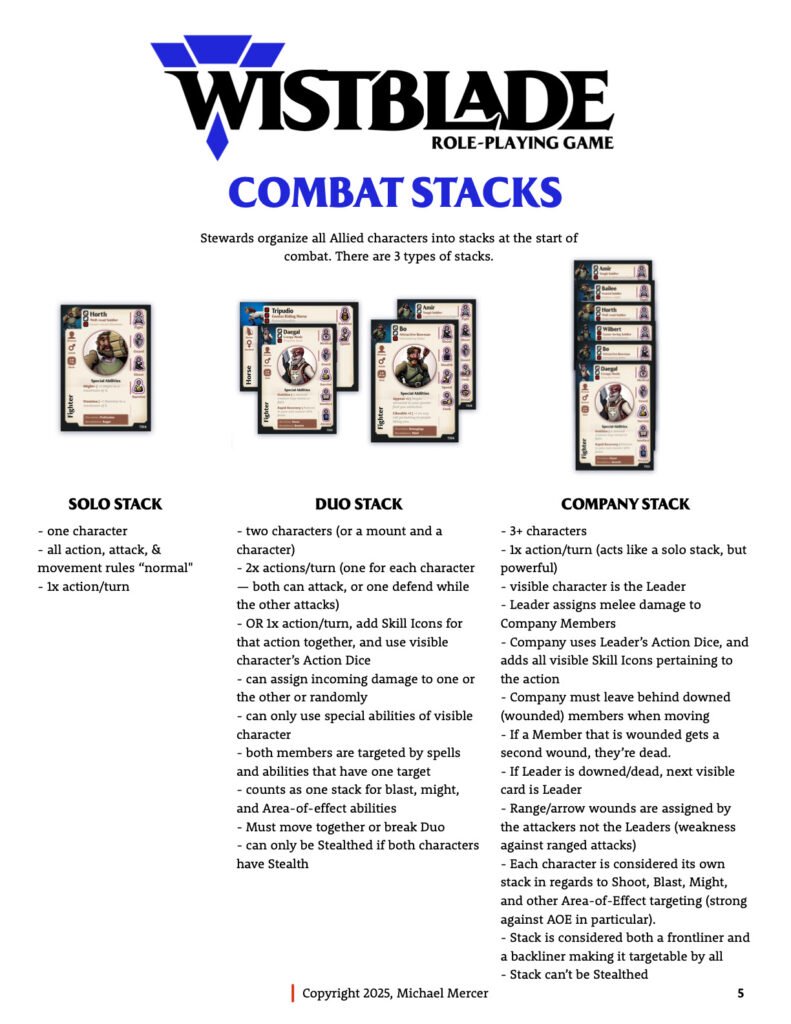 Wistblade will not be complete until you can clash armies, defend ramparts, blow up walls, trample enemies with horses, or squash you by a giant. These fight scenes are what I want my game nights to feature, and what Wistblade’s combats and mechanics should ignite in the imaginations of its players. High respect for mounts, animals in general, and the power of creature size, attack position, and group formation are all essential. I’ll be talking more about Wistblade combat soon. Stay tuned!